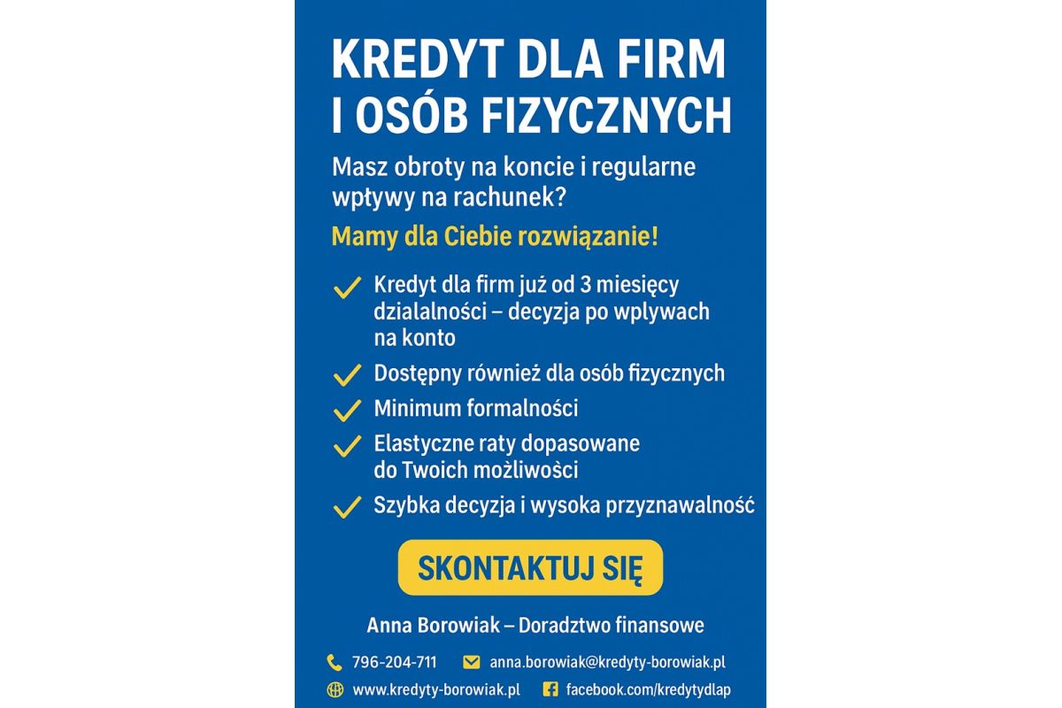 KREDYT DLA FIRM I OSÓB FIZYCZNYCH PO WPŁYWACH NA KONTO